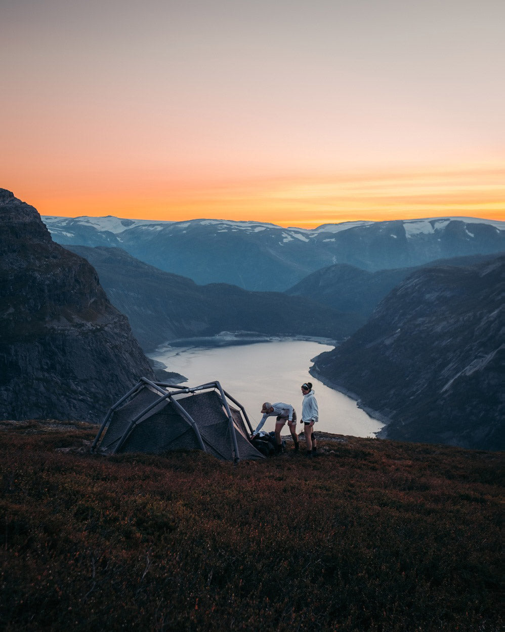 Diese 8–12-stündige Wanderung erstreckt sich über zwei Tage, sodass du die Natur in vollen Zügen genießen kannst. Während sich am Nachmittag die Menschenmassen von Trolltunga verabschieden, kommen wir an und erleben die goldene Stunde – perfekt für atemberaubende Fotos, ganz ohne Stress und Warteschlangen. Von dort aus ist es nur ein kurzer Weg zu unserem abgelegenen Camp auf 1200 Metern Höhe, wo ein entspannter Abend auf dich wartet.