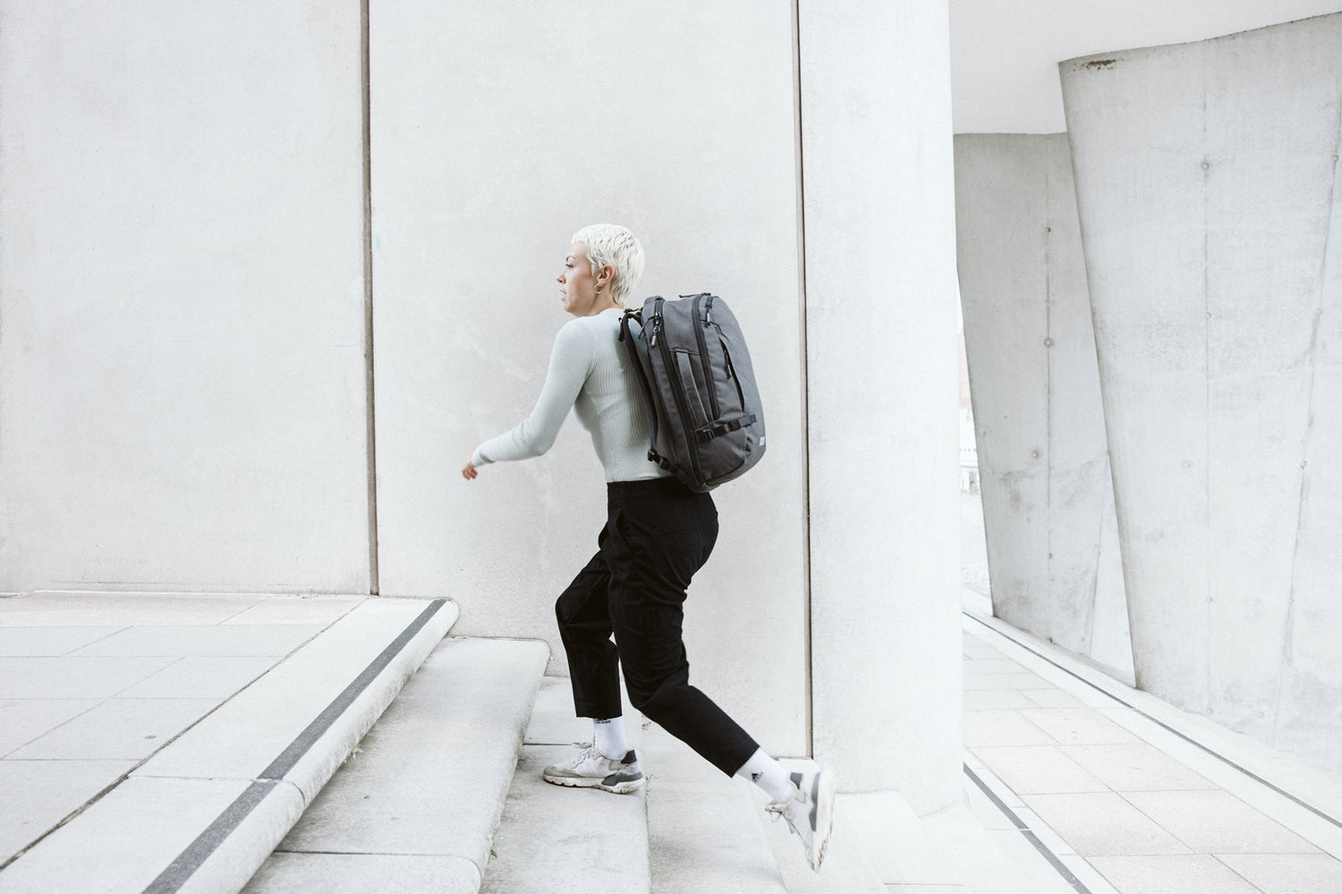 Drei Jahre Forschung & Entwicklung mit dem Institut für Textiltechnik der RWTH Aachen und dem Fraunhofer-Institut für Chemische Technologie ergeben einen der ersten vollständig Recyclebaren und recycleten Rucksäcke der Welt - Der Mono Series Minimal Pack.