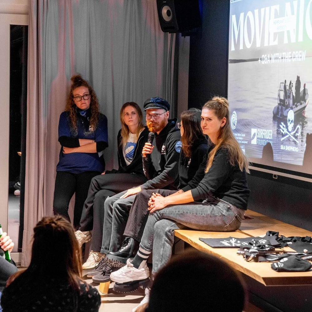 Die Sea Shepherd Crew-Mitglieder Alex, Michaela und Josephine gaben im Anschluss tiefe Einblicke in ihre Einsätze, erzählten offen von Herausforderungen auf See und beantworteten zahlreiche Fragen. Die Diskussion, die sich daraus entwickelte, war intensiv, ehrlich und voller wertvoller Perspektiven - ein Austausch, der lange nachhallt.