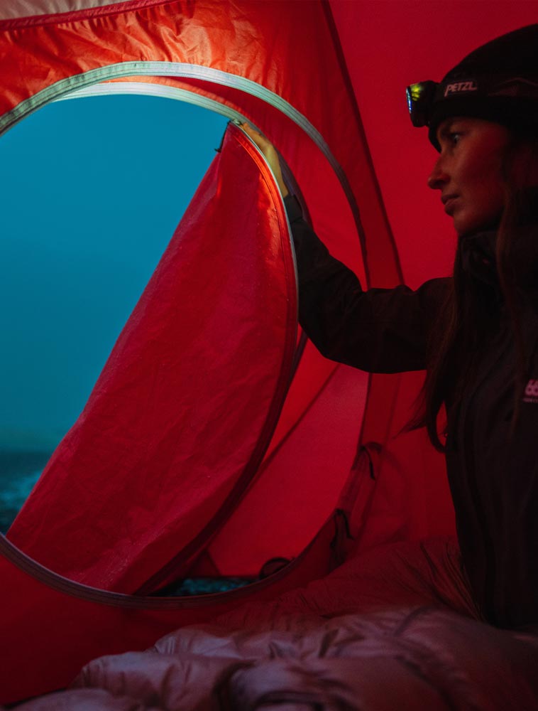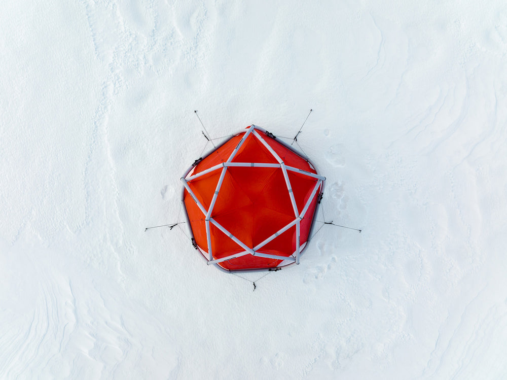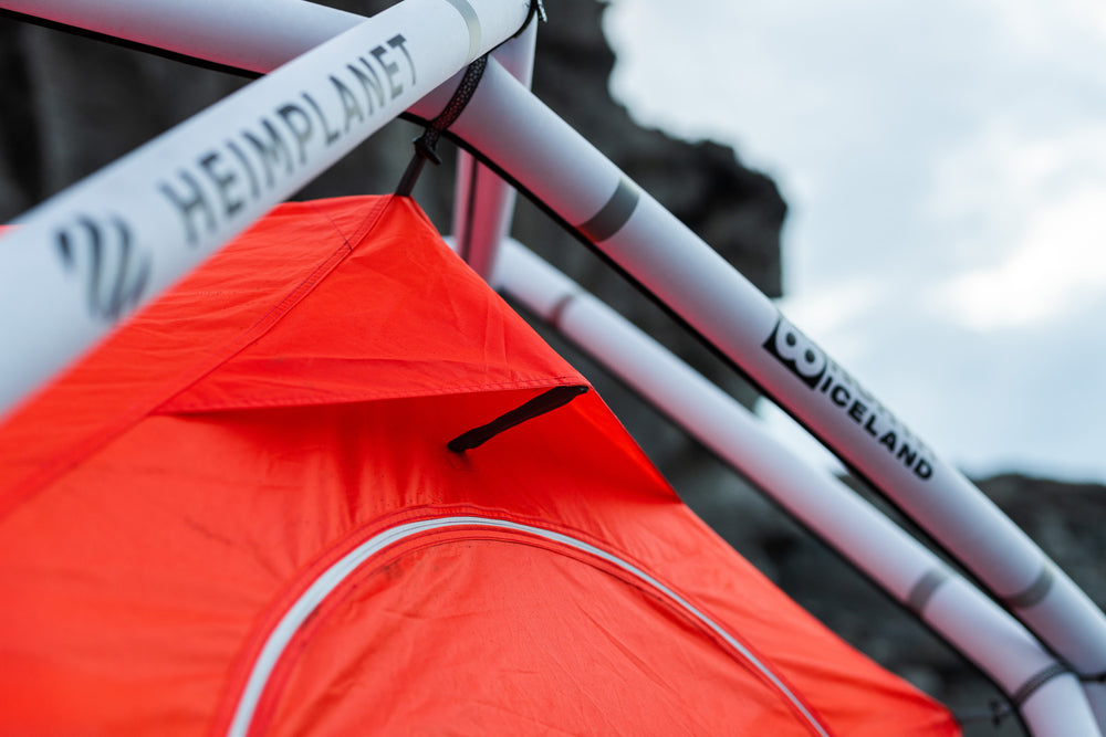 Das Zelt wurde entwickelt und getestet, um allen Jahreszeiten in Island standzuhalten - einem Land, das für seine dramatischen Wetterbedingungen und Temperaturen bekannt ist. Seine überragende Stärke verdankt das The Cave XL 4-Season seiner geodätischen Kuppelkonstruktion mit zehn Kreuzungspunkten und hochwertigen wetterfesten, langlebigen Materialien, die Wind, Schnee und Regen standhalten. Die leuchtend orange Farbe ist von den Schutzhütten im isländischen Hochland inspiriert und so konzipiert, dass sie sich von der isländischen Landschaft abhebt.