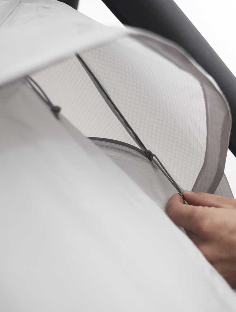 Dank einer neuen Variante unseres Inflatable Diamond Grid (IDG) konnten wir effizienter mit den Streben des Airframes umgehen. Dies führt zu einem stabilen Zelt mit weniger Gewicht. Bei einer Grundfläche von 5,2 m² (Innenzelt 4,2 m²) wiegt Kirra nur 3,8 kg.