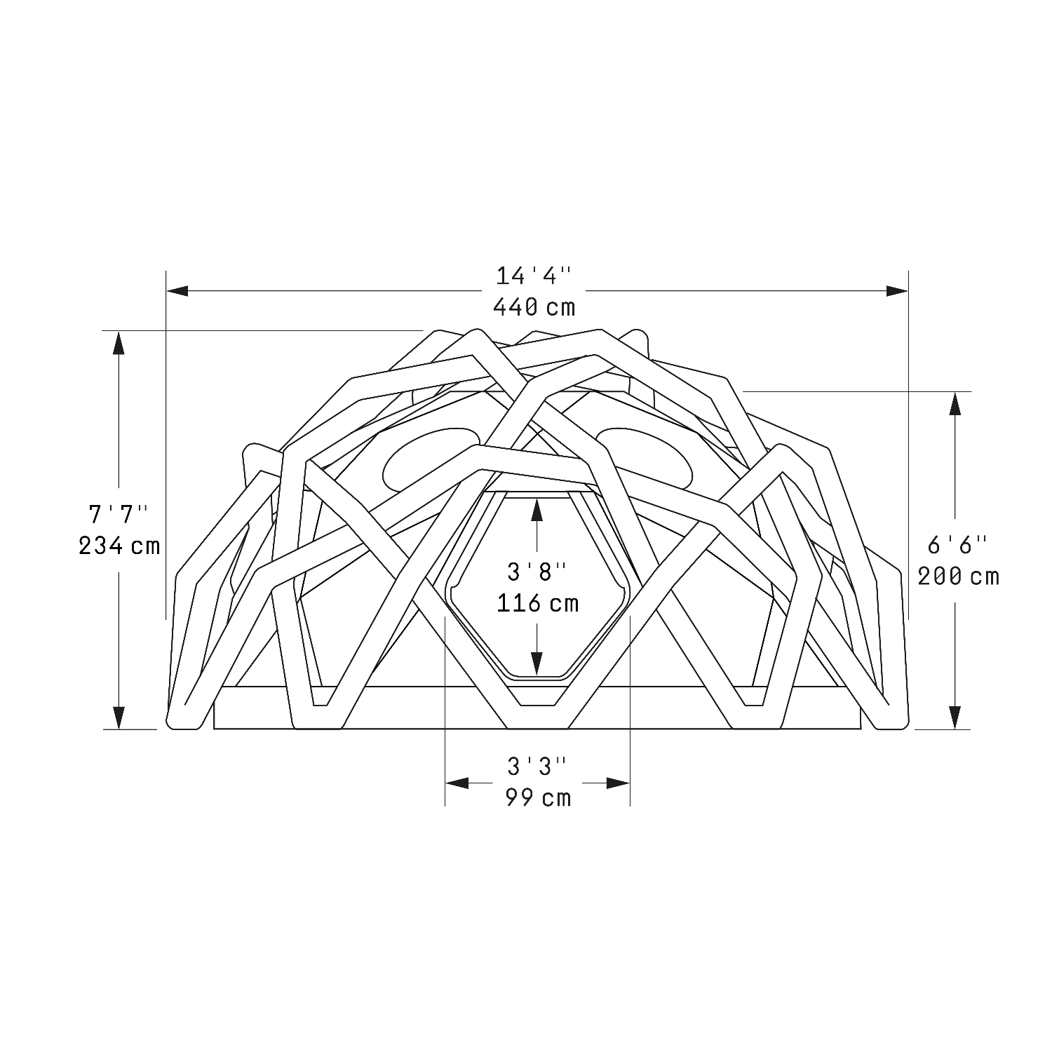 Der Luftrahmen bietet eine beeindruckende Stabilität. Dank des geodätischen Prinzips sind Abspannseile nur unter extremen Bedingungen notwendig. Das Mavericks ist für Windgeschwindigkeiten von bis zu 180km/h ausgelegt.